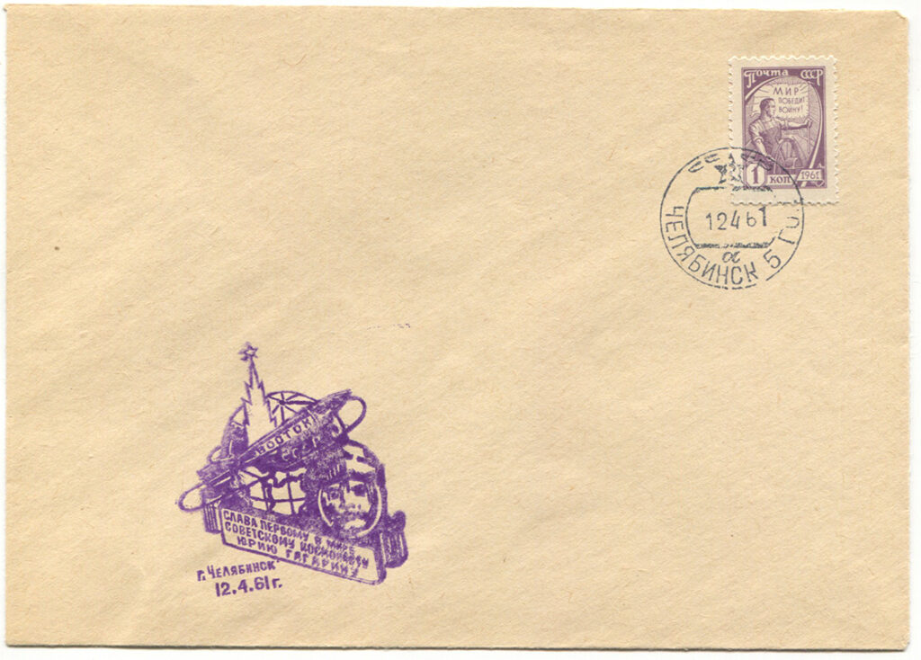 To finally get to the point, it was the first commemorative cancellation related to Gagarin’s flight ever used in the Soviet Union—and, as we shall see, the only one that was actually applied at a post office on April 12, 1961, the very day of the historic flight.